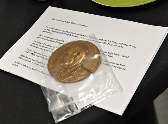 Afgelopen zaterdag vond er in de Standaard Boekhandel in Mortsel de signeersessie met Bart De Wever plaats. Onze voorzitter signeerde er zijn nieuwe boek 'Het Verhaal van Antwerpen' voor iedereen die dat wenste. Tijdens de handtekensessie kreeg De Wever van een Mortselaar wel een heel speciaal cadeau: een bijzondere herdenkingsmedaille van brigadier-generaal Clare Hibbs Armstrong.