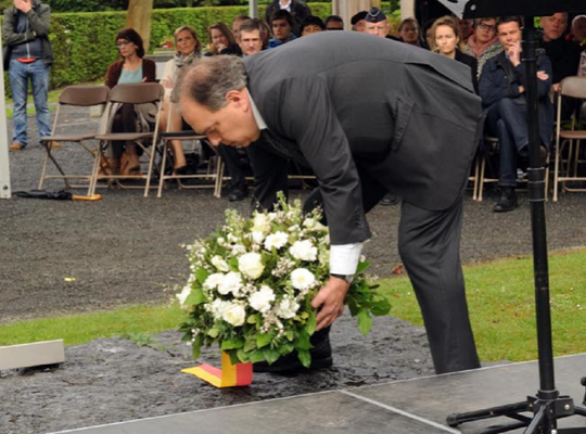 “Herinnering werd de kracht van 5 april. Want de jaren vergleden, maar de herinnering niet”, sprak burgemeester Erik Broeckx (N-VA) bij het neerleggen van de bloemen. “De herinnering aan die ene dag blijft haarfijn, spreekt in beelden, soms tranen en voelt ook na 74 jaar nog steeds onrechtvaardig aan.”